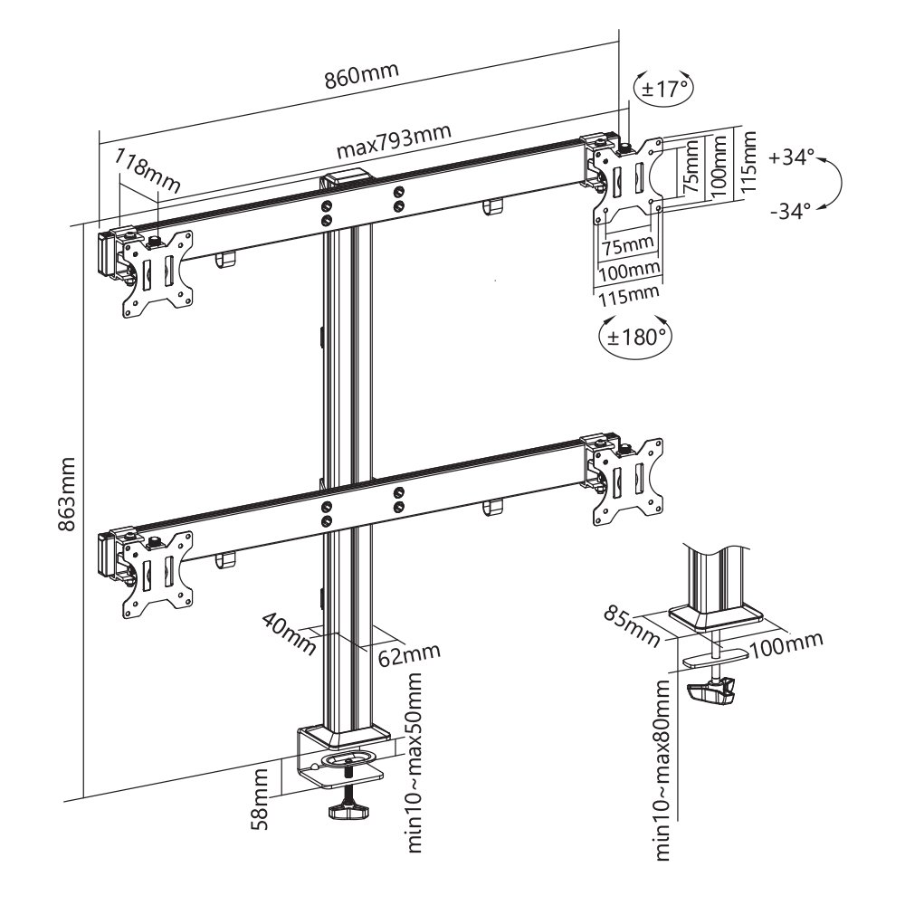Clamp:10~50mm Grommet:10~80mm (Clamp?0.39"~2" Grommet?0.39"~3.1") |