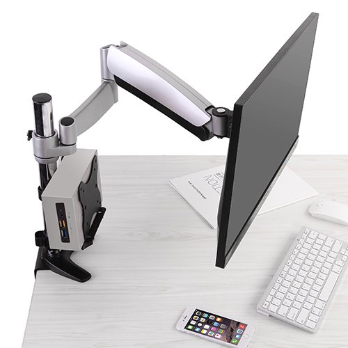 With the SH CP1 multifunctional thin client mount, placing your CPU in a convenient, accessible place has never been easier. You'll be able to mount your CPU instead of leaving it on the floor to take up your foot space! The universal design adapts to the dimensions of the box, while its mounting interface attaches to a variety of surfaces: a VESA plate, directly to a desk, clamped to a pole. Straps are included for increased stability. It’s weight capability is 5kg/11lbs. The CPB-1 is not only a great organizational tool, but also reduces CPU’s