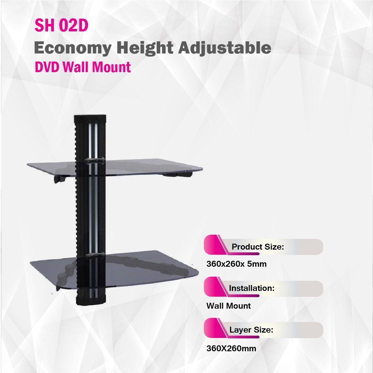 SH 02D Economy Height Adjustable DVD Wall Mount