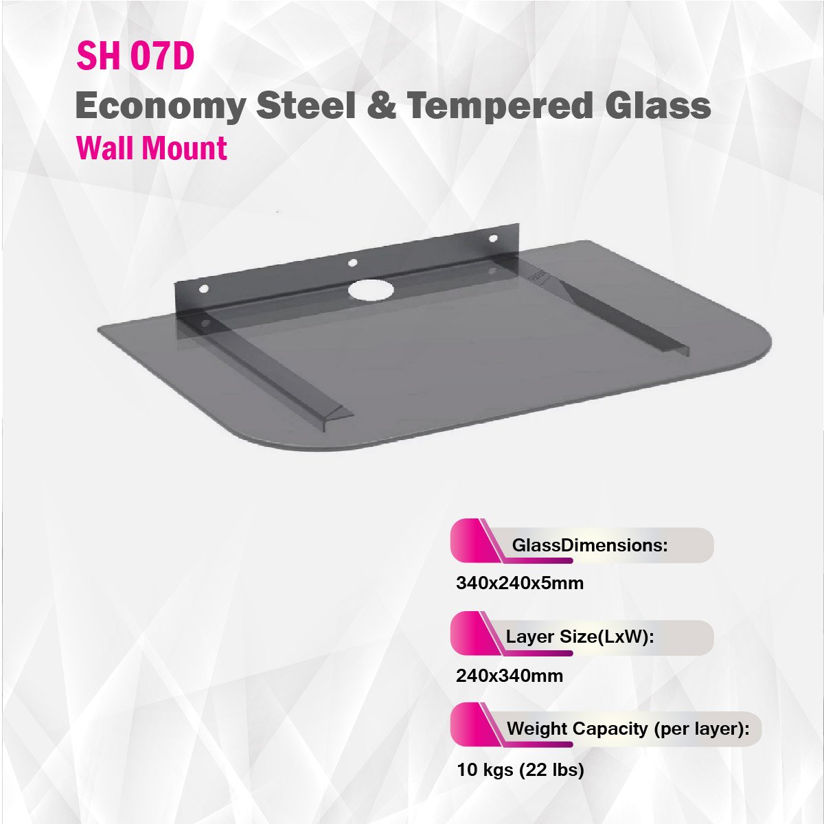 SH 07D Economy Steel & Tempered Glass Wall Mount