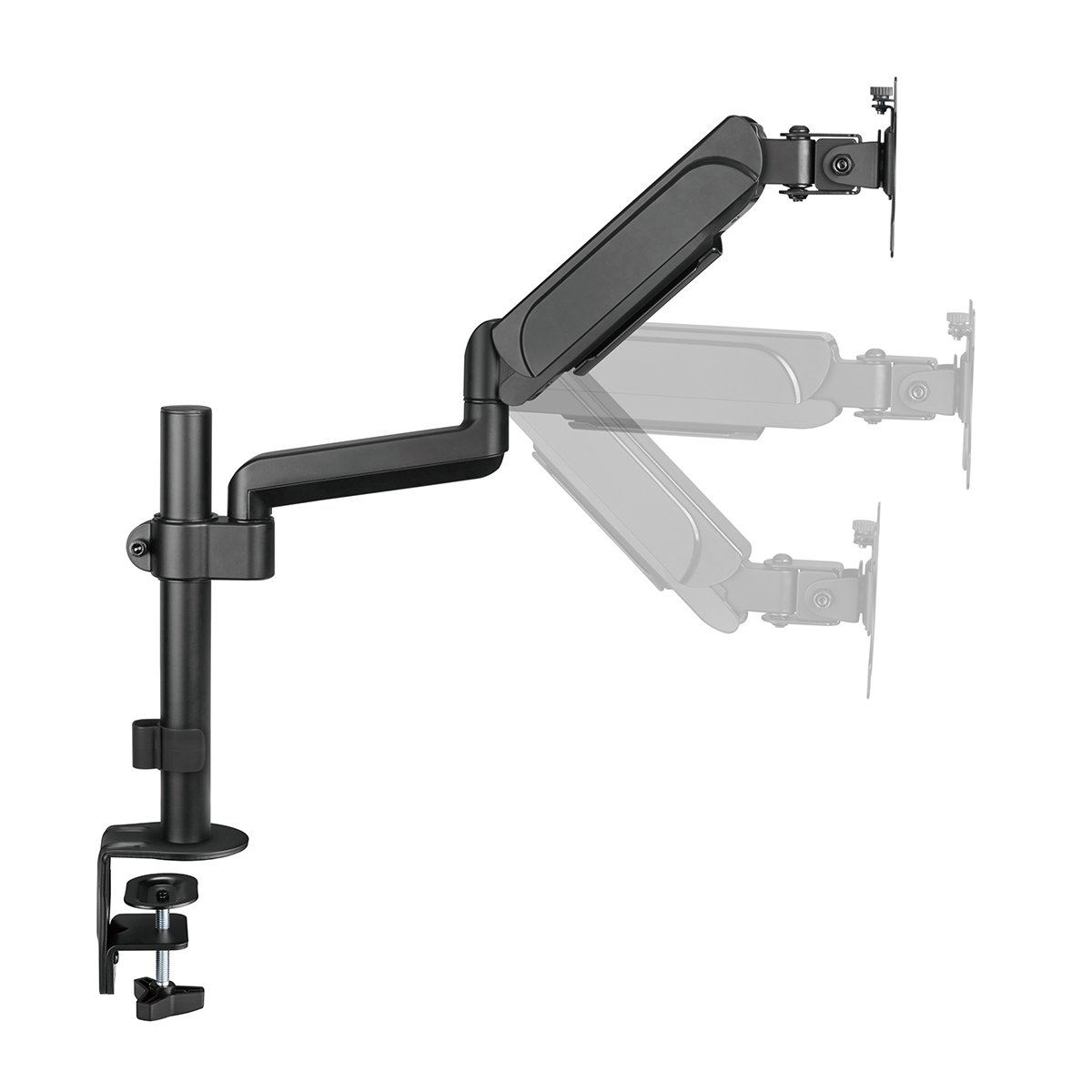 With robust construction and effortless adjustments, the SH48 C012 Pole-Mounted Gas Spring Monitor Arm firmly holds a display above the work surface, freeing-up valuable desk space. Ideal for organizing and optimizing any home or office work area. An internal gas spring mechanism provides smooth and quick adjustments for the most comfortable viewing angles. A quick-release VESA plate makes monitor installation or removal fast and easy. Built-in cable management keeps wires hidden and arranged for a cleaner look. Best of all, the SH48 C012 is competitively priced to build sales and profits for your business.