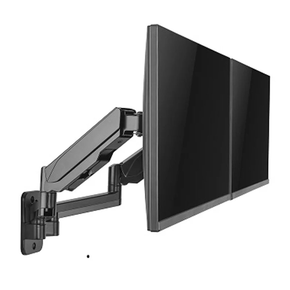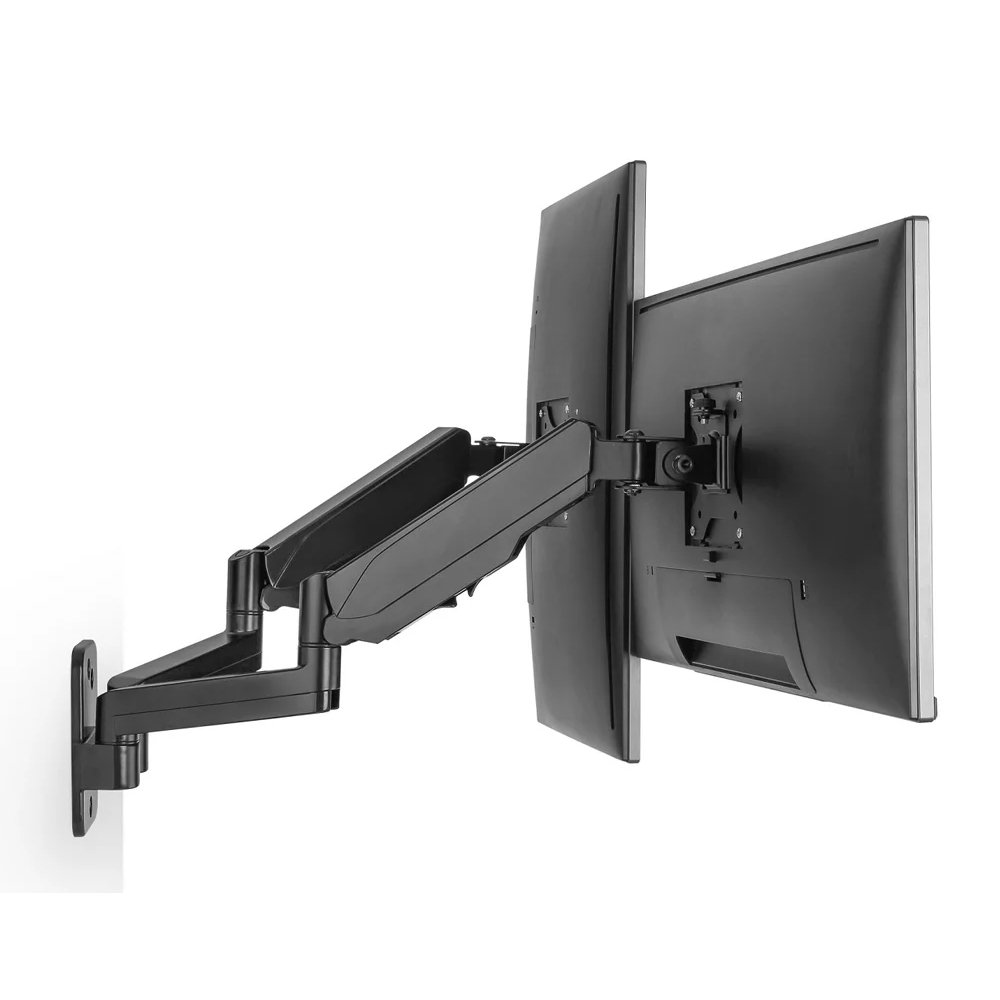 The SH W1014H is a versatile gas spring monitor wall mount designed to optimize your workspace. This monitor arm is constructed from durable aluminum and plastic materials, featuring a sleek powder-coated finish in matte black and metallic grey, adding a modern touch to your setup. With dimensions of 924x100x386mm (36.4"x3.9"x15.2"), it's suitable for accommodating most 17" to 32" screens, including curved monitors, making it a versatile choice.This monitor wall mount supports dual screens with a weight capacity of 1-8kg (2.2lbs-17.6lbs) per screen, providing flexibility for your multitasking needs. It's VESA compatible with 75x75 and 100x100mm patterns, ensuring compatibility with various monitor models. The mount offers a wide range of adjustability, with a tilt range of +35° to -35°, swivel range of +90° to -90°, and screen rotation of +180° to -180°. The arm can extend up to 422mm (16.6") for customizable viewing angles.Installation is straightforward as it's designed for wall mounting, and the profile is kept minimal at a minimum of 99mm (3.9"), saving valuable desk space. Cable management is integrated to keep your workspace organized, and the accessory kit package includes normal/ziplock polybags and a compartment polybag. The SH W1014H gas spring monitor wall mount is a practical solution to enhance your productivity and create an ergonomic and clutter-free workspace.