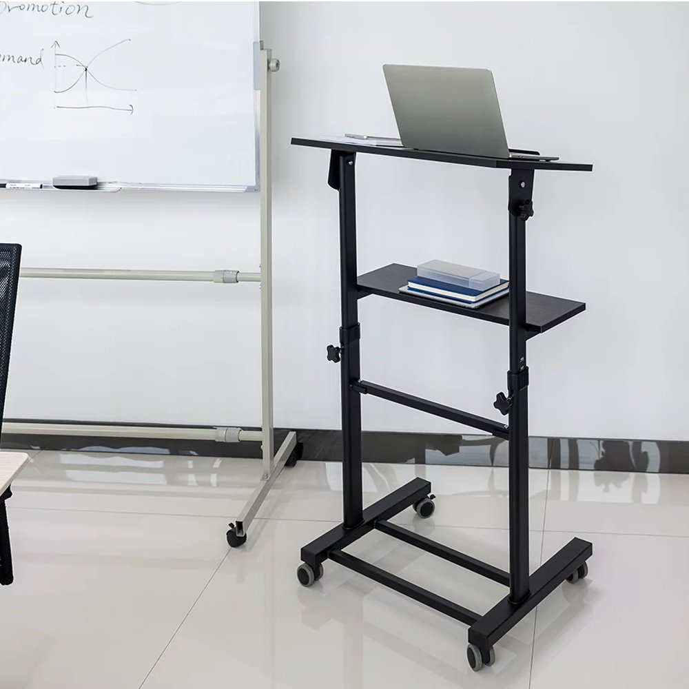 The SHWS-T01A is a standard freestanding mobile workstation designed to enhance your productivity and adapt to your ergonomic needs. Its sturdy construction features particle board and melamine, steel, and plastic components, ensuring durability and reliability for your work setup. The sleek black color adds a professional and modern touch to your workspace.This mobile workstation offers ample space with its worksurface size of 600x400mm and an additional 600x190mm platform, providing room for your computer, peripherals, and other work essentials. The 16mm thick worksurface can support up to 40kg (88lbs) of weight, accommodating your equipment and materials.One of the standout features of this workstation is its tiltable tabletop, which can be adjusted from 0° to +40°, allowing you to find the perfect angle for writing, drawing, or reading. The height range of 1050mm to 1270mm (41.3" to 50") is manually adjustable, ensuring that you can customize the workstation to your preferred sitting or standing height.