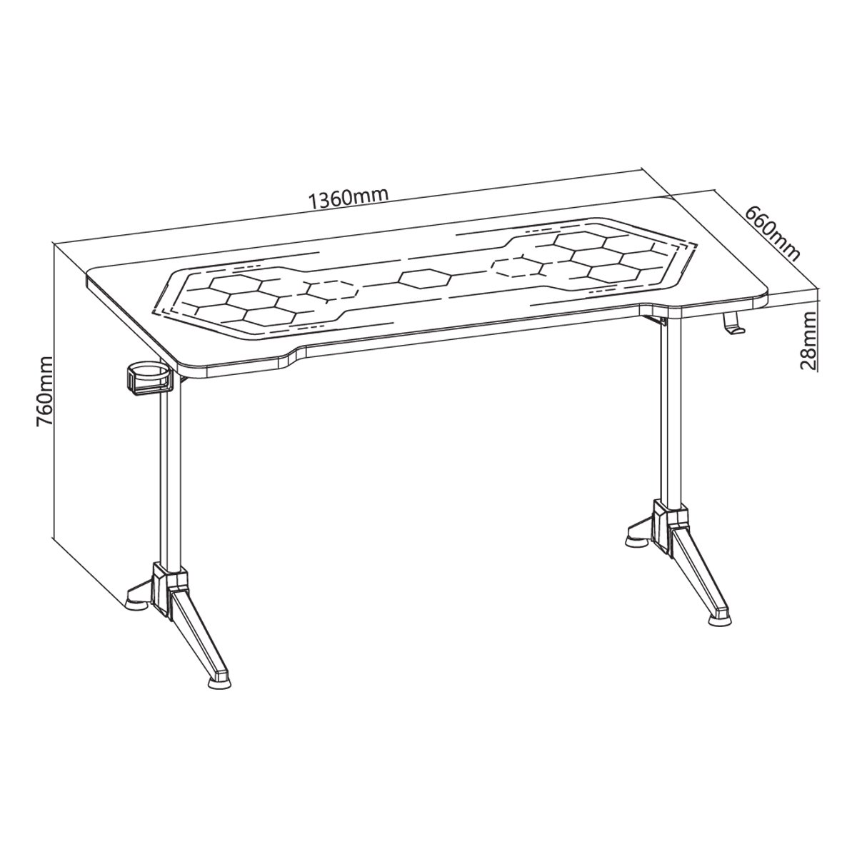 | Tabletop Size?LxWxT?: | 1360x660x28mm (53.5"x26"x1.1") |