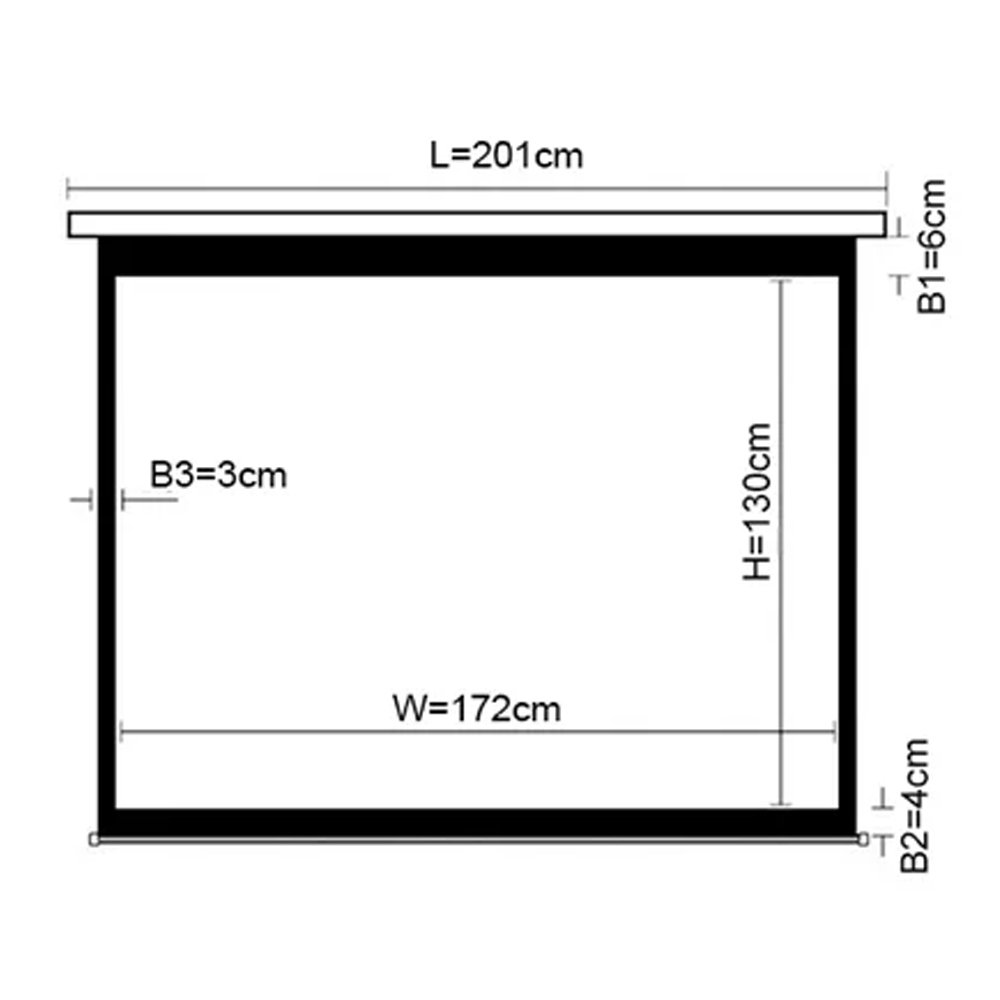 The Electric Projection Screen SH EPS86 is perfect for education, commercial presentations or residential home cinema. This screen is equipped silent operation synchronized motor with extended operational longevity and low power consumption. The included standard Radio Frequency (RF) remote control allows operating the screen freely in the room. Its 3-way wall switch provides additional control options. Black backed screen material eliminates light penetration for superior color reproduction. Standard 4-side black masking borders. Fibreglass matte white screen material with 1.2 gain and 120°viewing angle is durable and easy to clean. Tubular motor on option. The projection area of this 86’’ screen is: 1.72x1.30m.