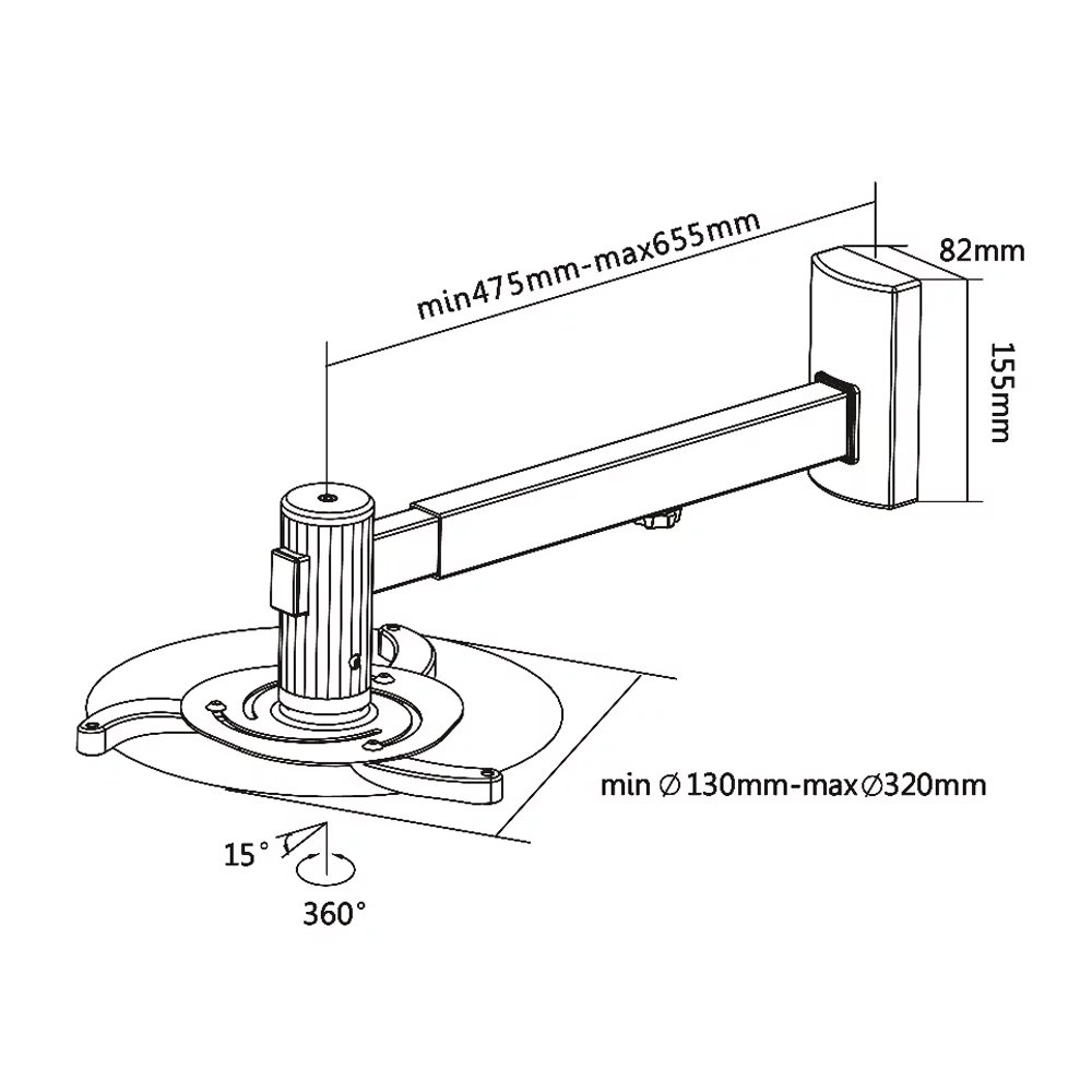 The SH S05P is an aluminum short throw wall mount for most projectors up to 10kgs/22lbs. 360° rotation and 15° tilting adjustments allow maximum viewing ability. It offers flexible projector positioning with four adjustable support arms that can fit a wide range of mounting holes. The quick-release connector allows the projector to be installed quickly and then easily released for maintenance, without re-alignment. The adjustable length can meet different needs. The decorative plastic cover presents a nice look.