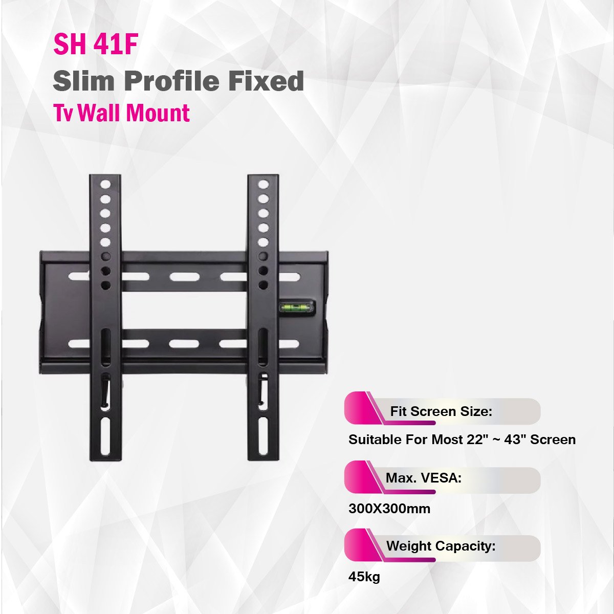 With an impressively low 28mm mounting profile, the SH 41F is a fixed wall mount that perfectly fits those applications where seamless integration counts most. It supports most 22” ~ 43” flat-panel TVs up to 45 kgs. VESA patterns up to 300x300 mm. If you’re looking to add deep to your favorite movie, the SH-41F is waiting to show you what you’ve been missing.