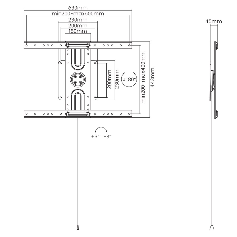 | Metal Sheet Thickness: | Bracket Arm THK=2mm cold-rolled sheet,VESA Panel THK=2mm cold-rolled sheet,Wall Plate THK=4.0mm pickling sheet (Bracket Arm THK=0.079" cold-rolled sheet,VESA Panel THK=0.079" cold-rolled sheet,Wall Plate THK=0.16" pickling sheet) |