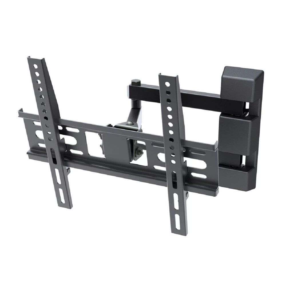The SH 43P Super Economy Full-Motion TV Wall Mount offers a budget-friendly solution for enhancing your home entertainment setup. Crafted from a combination of steel and plastic materials with a sleek matte black powder coating finish, this wall mount provides durability and a contemporary look. It's compatible with most 20 to 55-inch screens and supports various VESA patterns, including 75x75, 100x100, 200x100, 200x200, 300x300, and 400x400mm, making it suitable for a wide range of television brands and models. With a weight capacity of 30kg, it ensures secure mounting, and the adjustable profile ranges from 95 to 430mm, allowing you to find the perfect TV height. You can achieve your preferred viewing angle with a tilt range of +15° to -15°. Installation is straightforward, with options for solid wall or single stud mounting. The panel type is detachable, and it comes with a fixed wall plate for added convenience. The SH 43P Super Economy Full-Motion TV Wall Mount is a cost-effective choice that combines versatility and affordability, making it an excellent addition to your home entertainment setup.