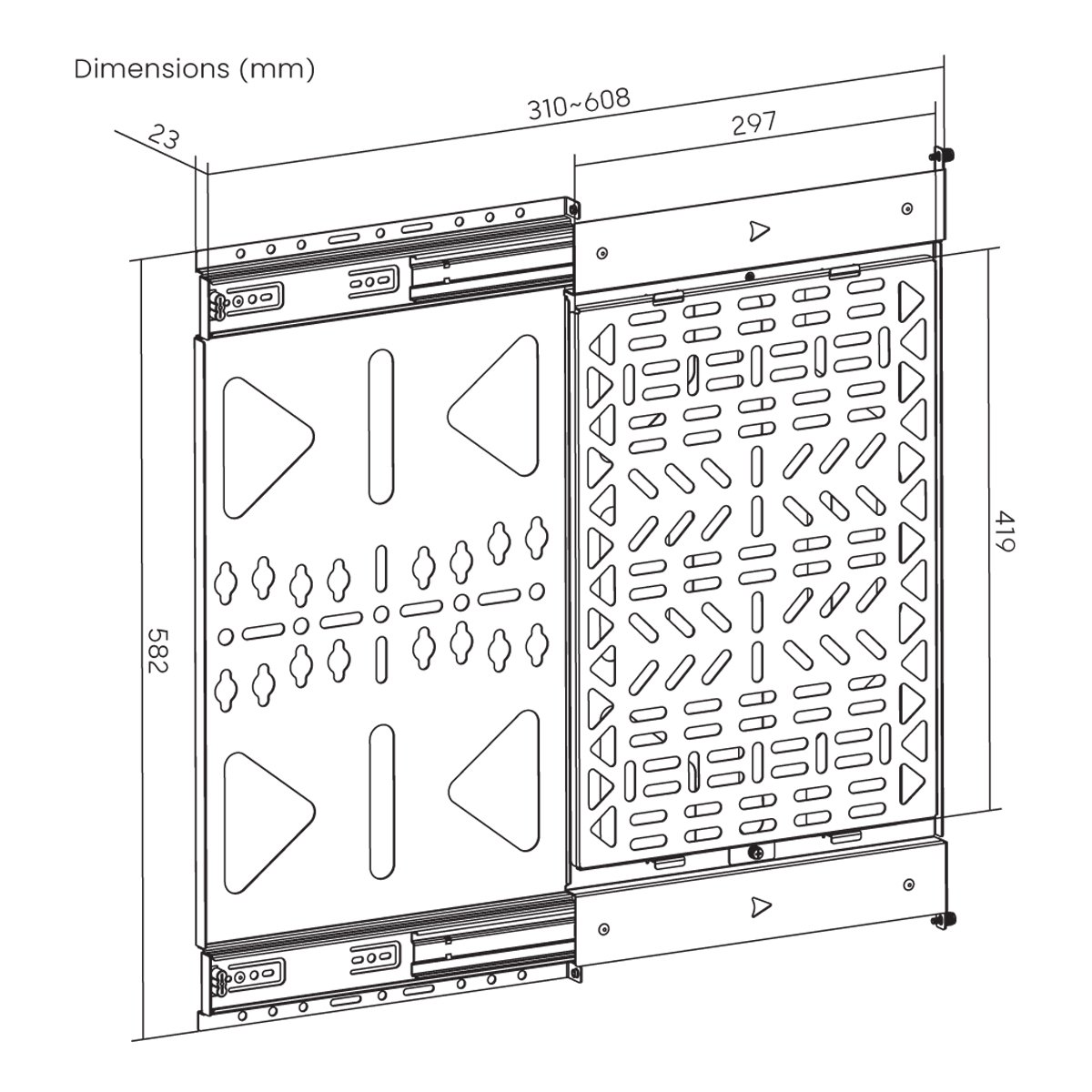 Introducing the SH APM 10 01 Sliding AV Storage Panel, a sleek and efficient solution in the Media Player Mount category. Crafted from durable steel with a powder coating surface finish in matte black, this sliding panel offers a standard yet stylish option for organizing and showcasing your media equipment. With dimensions of 608x23x582mm (23.9"x0.91"x22.9"), it provides ample space for mounting your media player securely. Designed for a weight capacity of 10kg (22lbs), it ensures stability and reliability. The wall-mounted installation enhances space utilization, keeping your media area tidy. The package includes a convenient accessory kit packaged in a normal/ziplock polybag, making installation a breeze.