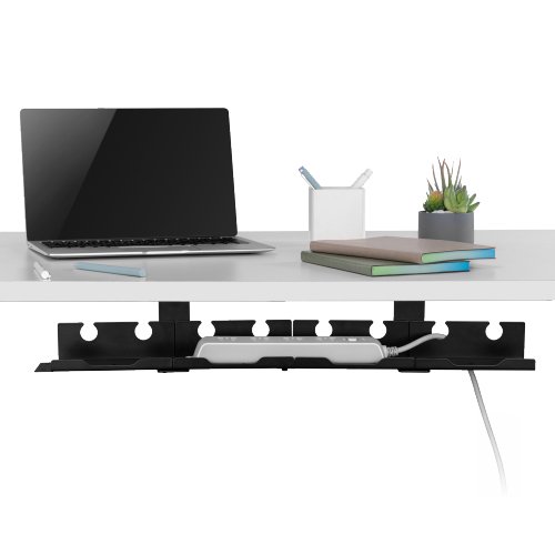 Hold power strip and keep wires away with SH MH02-5. Modular design enables large capacity by combining multiple units. The sturdy structure supports up to 2.2lbs/1kg. Open design makes it easy to route and store cables. Both tray and hook are included in the set.
